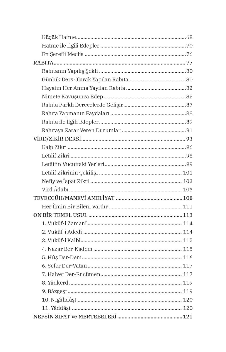 Her ilmin bir usulü vardır. Aksi takdirde tutarsızlık zuhur edecek ve herkes kendince bir din anlayışı benimseyecektir. Bu usuller büyük mezhep imamları ve diğer yetkili alimlerce hevadan uzak, sahih rey ve nakillerle belirlenmiş durumda. Ariflerin yolu edeptir. Her meşrebin kendine mahsus bir adabı vardır. Şeyh Seyyid Muhammed Sâkî Elhüseyni hazretlerinin irşada başladıktan sonraki ilave ve tavsiyelerini bulabileceğiniz bu eser Nakşî-Hâlidî yolunun rehber kitaplarındandır.