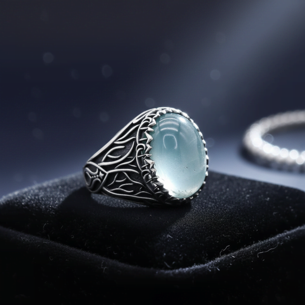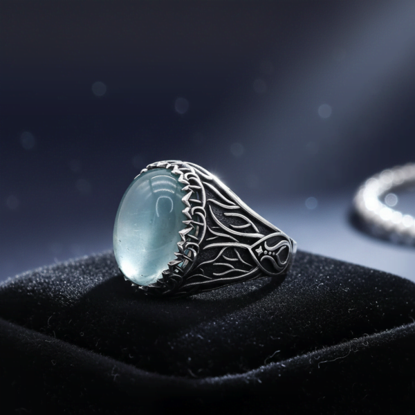 Doğal taş Akuamarin kullanılan bu erkek gümüş yüzük, sade ama dikkat çekici tasarımıyla zamansız bir şıklık sunar. 925 ayar gümüş gövde ile akuamarinin berrak görünümü uyumlu bir bütünlük sağlar ve günlük kullanım için ideal bir tamamlayıcıdır.
