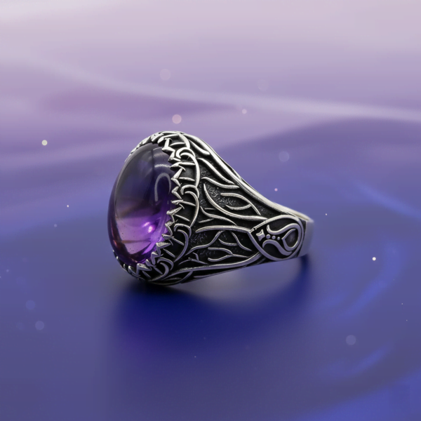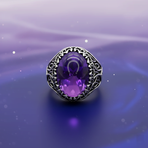 Doğal taş Ametist ile tasarlanan bu erkek yüzük, sade çizgileri ve güçlü duruşuyla klasik detaylardan hoşlananlar için ideal bir modeldir. 925 ayar gümüş ile ametistin özgün görünümü birleşerek hem günlük kullanımda hem özel anlarda şık bir tamamlayıcı sunar.
