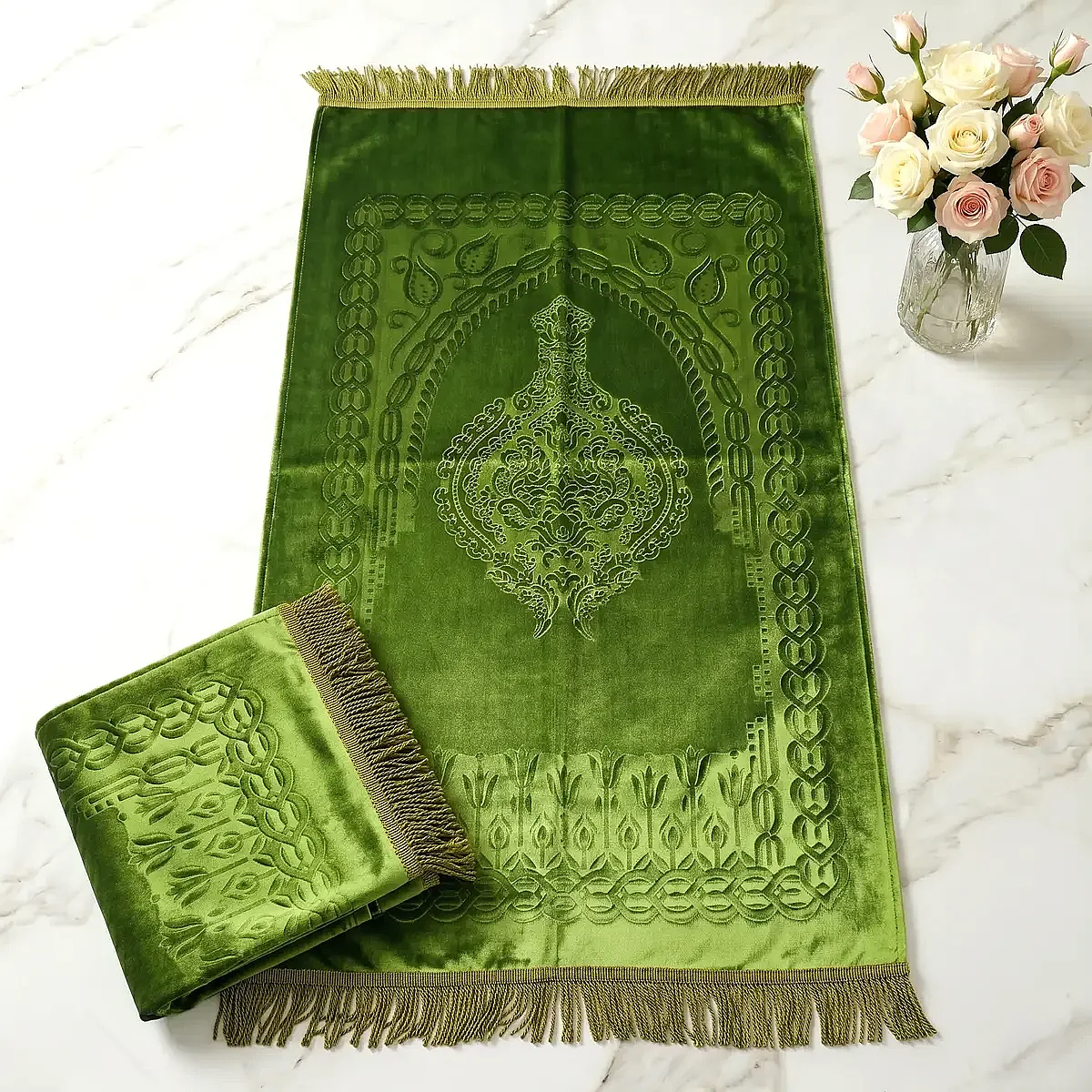 Astarlı Süngerli Kalın Platinyum Seccade 68x115 650 Gr Yeşil M1