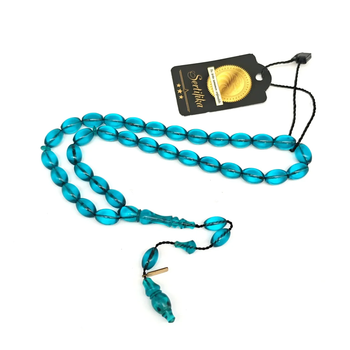 Ateş Kehribar Mavi Arpa Kesim Tesbih HA16 - 1Ateş Kehribar Mavi Arpa Kesim Tesbih HA16 - 2