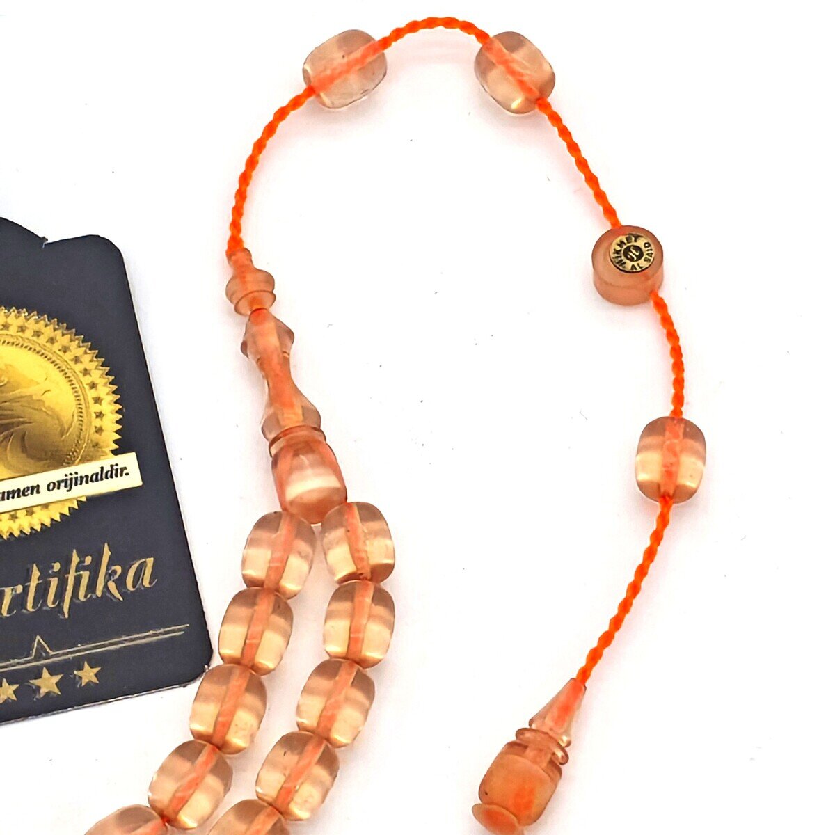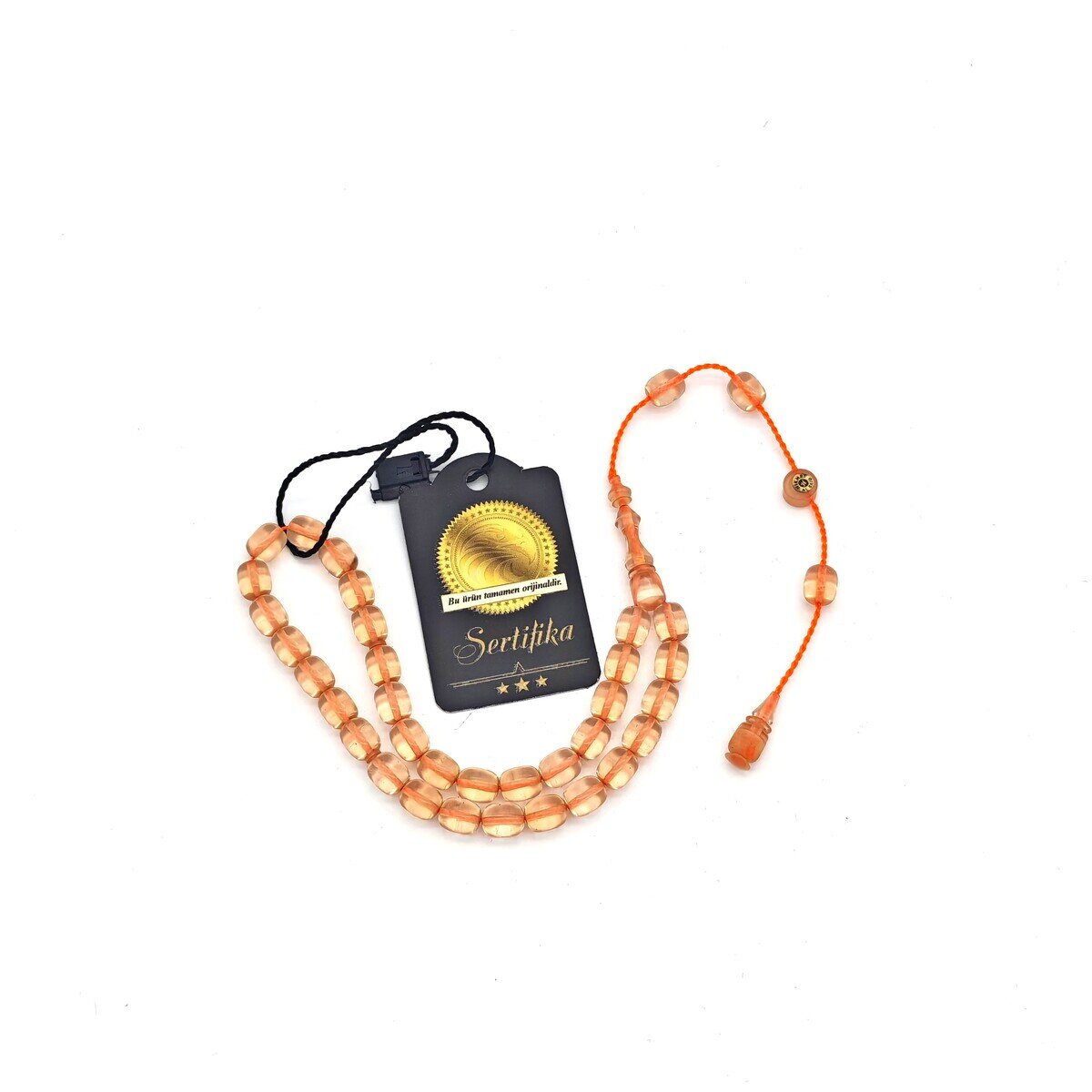 Tesbihlerde kullanılan materyal, ürün başlığında belirtilen cins bilgisine göre (sıkma kehribar, ateş kehribar vb.) değişmektedir. Kehribar yapısı gereği renk ve desenlerde doğal farklılıklar görülebilir.