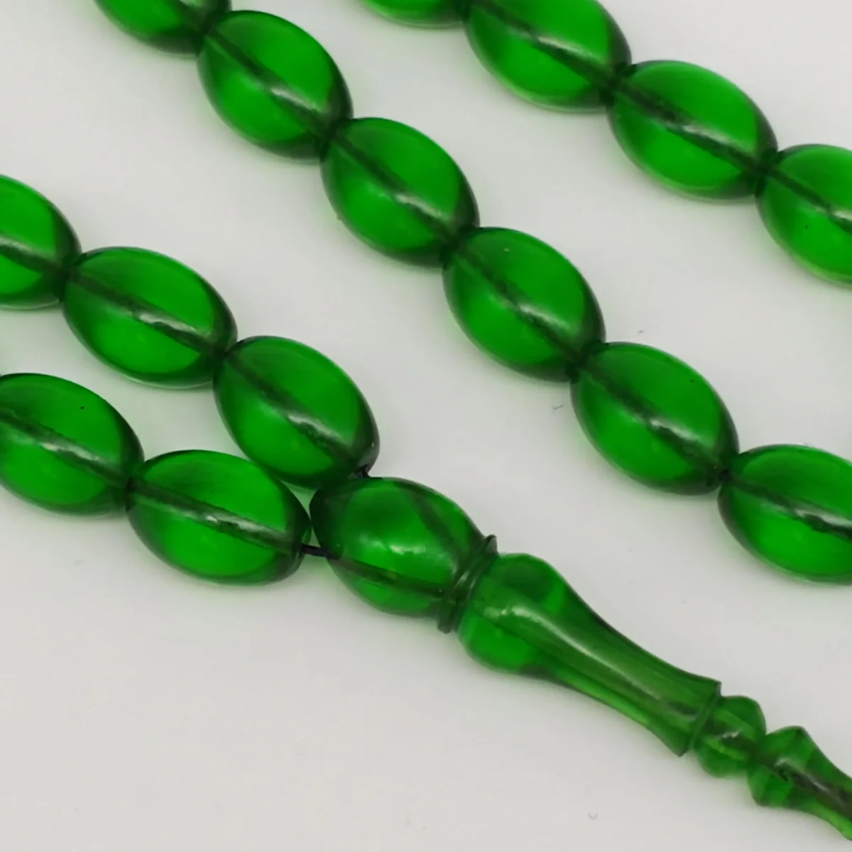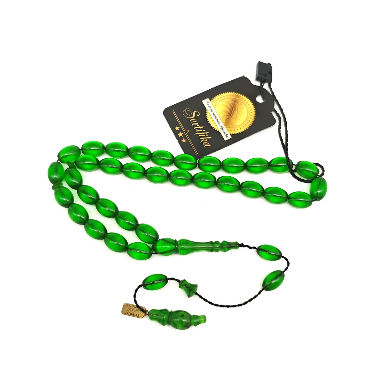 Ateş Kehribar Yeşil Arpa Kesim Tesbih HA15 - 1Ateş Kehribar Yeşil Arpa Kesim Tesbih HA15 - 2