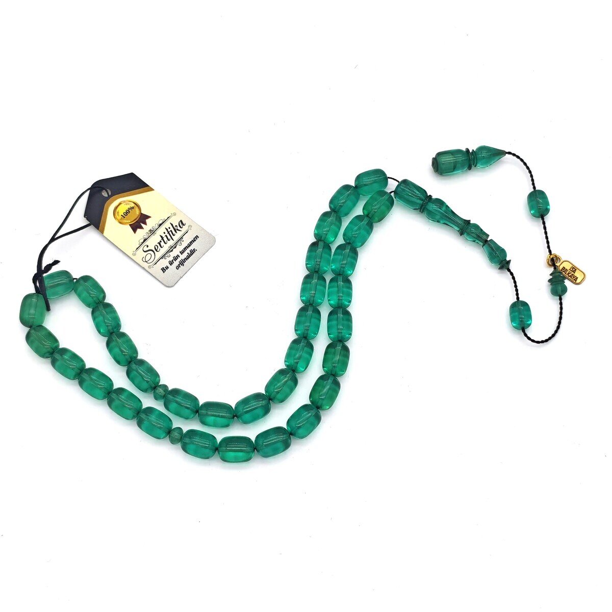 Tesbihlerde kullanılan materyal, ürün başlığında belirtilen cins bilgisine göre (sıkma kehribar, ateş kehribar vb.) değişmektedir. Kehribar yapısı gereği renk ve desenlerde doğal farklılıklar görülebilir.