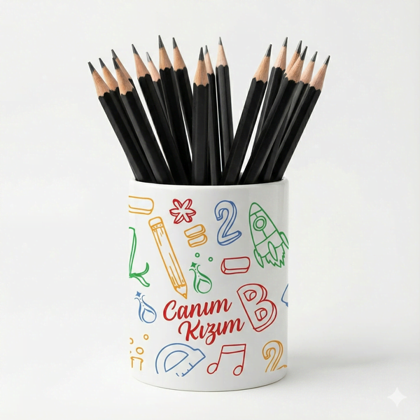 Eğlenceli Seramik Kalemlik - Harfler Sayılar ve Okula Merhaba Temalı - Canım Kızım - Çizgi M21