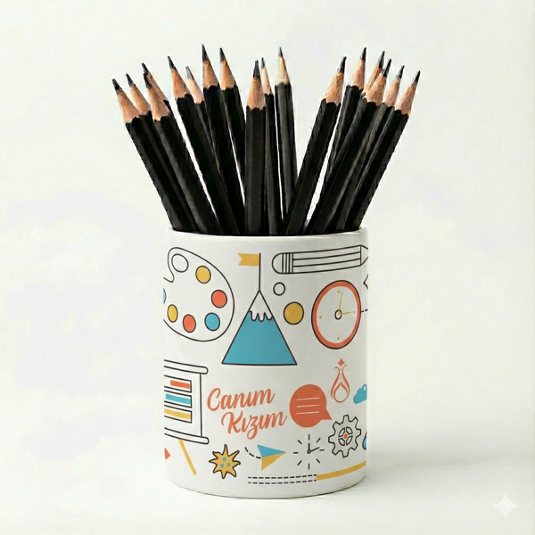 Eğlenceli Seramik Kalemlik - Bilim Teknoloji ve Kimya Temalı - Canım Kızım - Çizgi M24