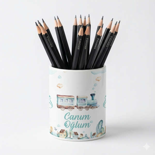 Eğlenceli Seramik Kalemlik - Tren Traktör ve Uçak Sevimli Taşıtlar Temalı - Canım Oğlum - Çizgi M16