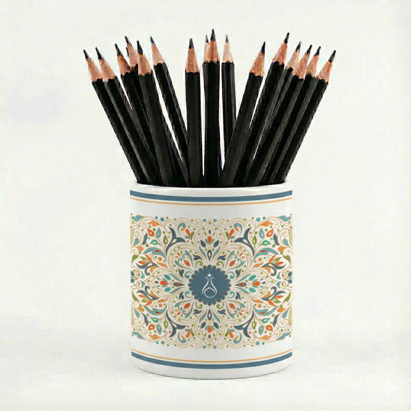 Renkli Motifli Seramik Kalemlik - Serhendi Logolu - Çizgi M8