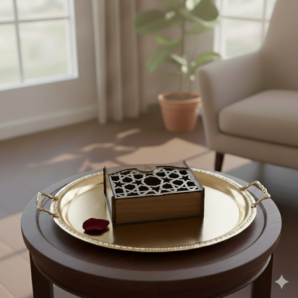 Açık desenli kapağı ve gümüş pleksi detayıyla şık bir sunum kutusu olarak öne çıkan bu küçük boy MDF kutu, ceviz rengiyle sıcak ve zarif bir hava taşır.
