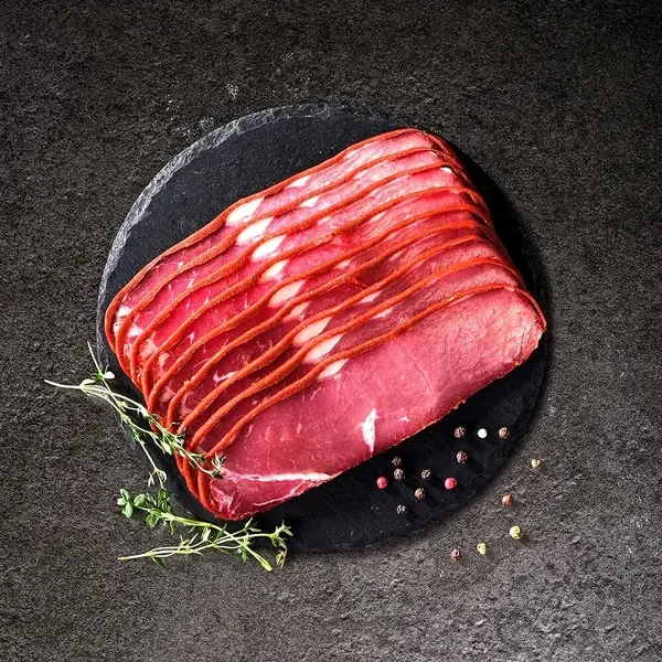 Özel baharat karışımıyla hazırlanan çemen kaplaması, pastırmaya karakteristik aroma ve dengeli bir baharat profili kazandırır. İnce dilim formu sayesinde her lokmada çemenin belirgin tadı hissedilir.