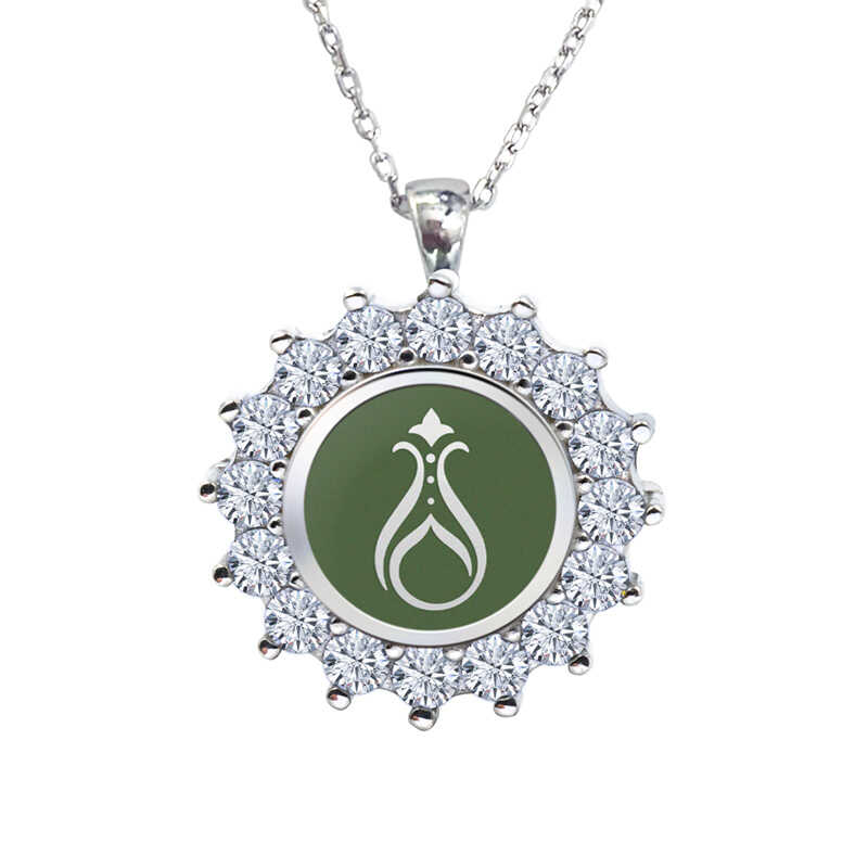 925 Ayar Zirkon Taşlı Kadın Gümüş Kolye - Serhendi Logolu - Gülistan Kolye M2 Yeşil