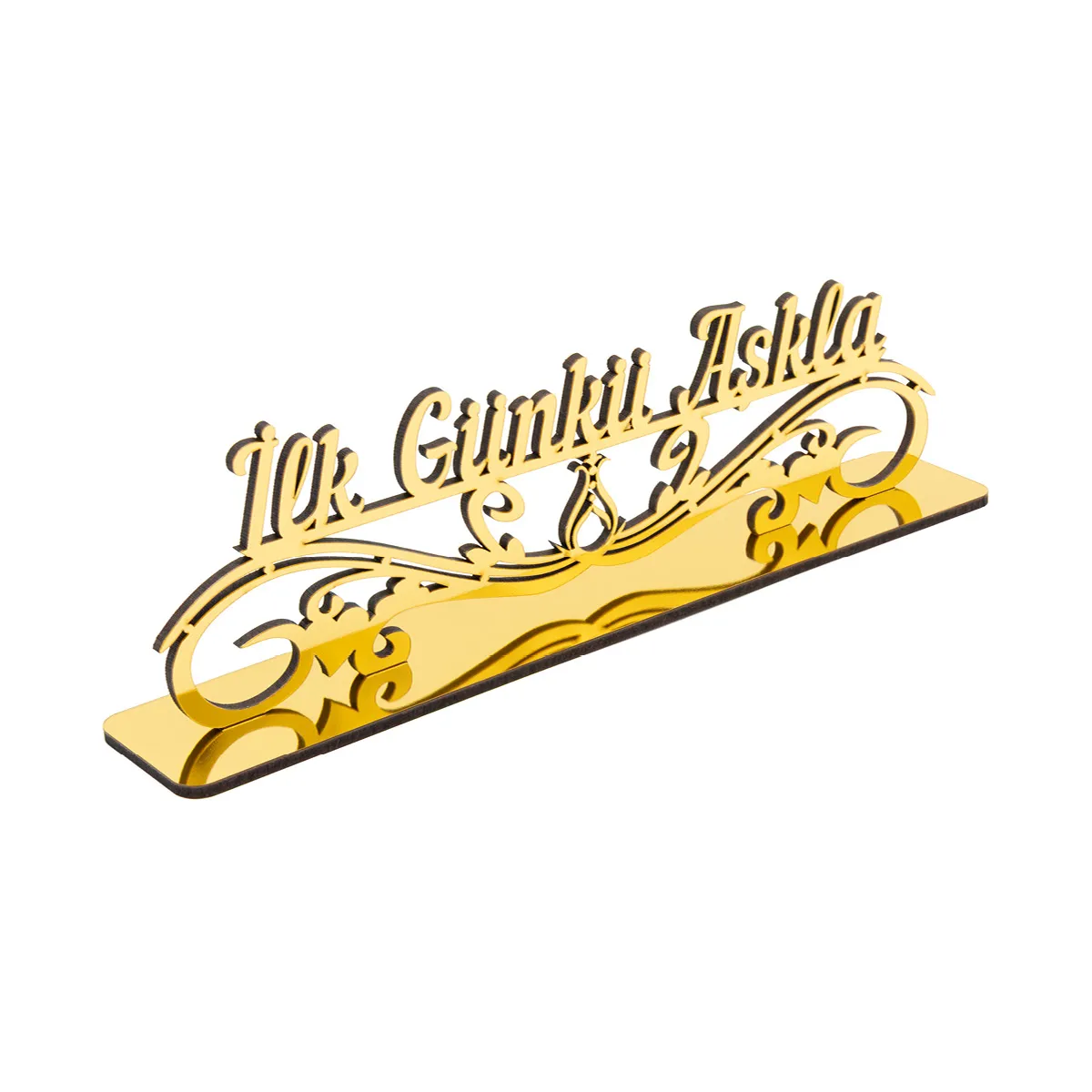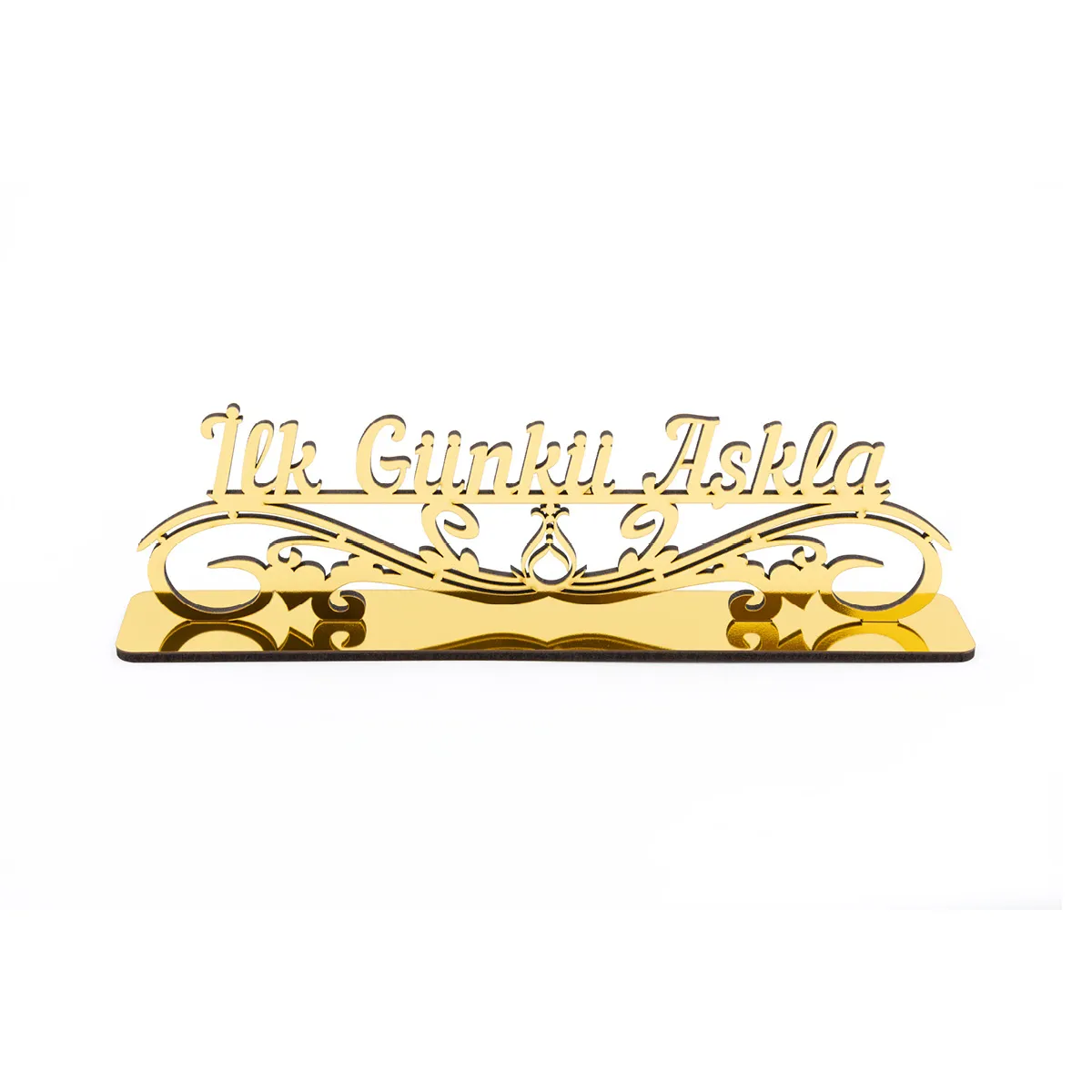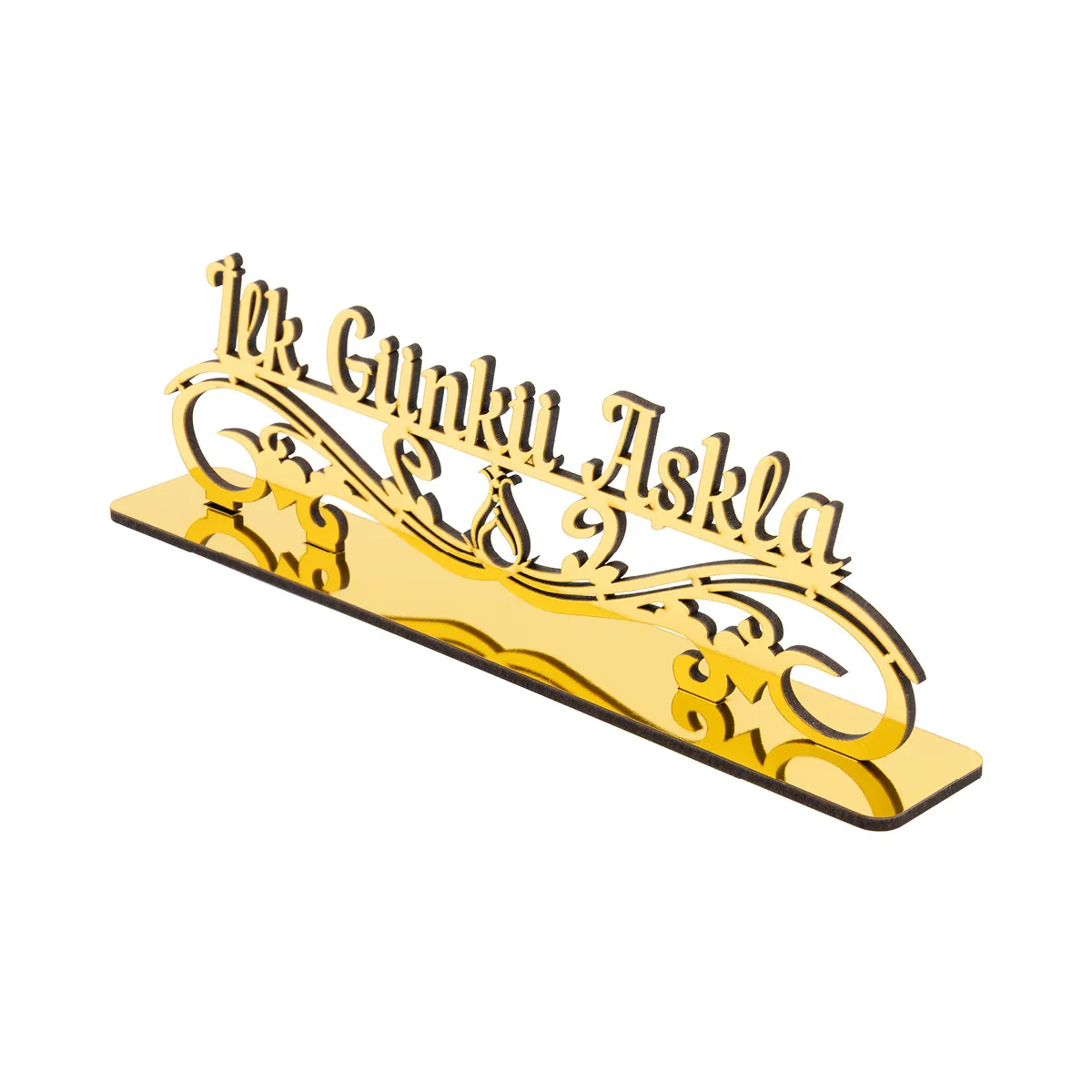 “İlk Günkü Aşkla” yazılı bu masaüstü dekor, hem evde hem de ofis ortamında anlamlı bir detay olarak tercih edilebilir.
