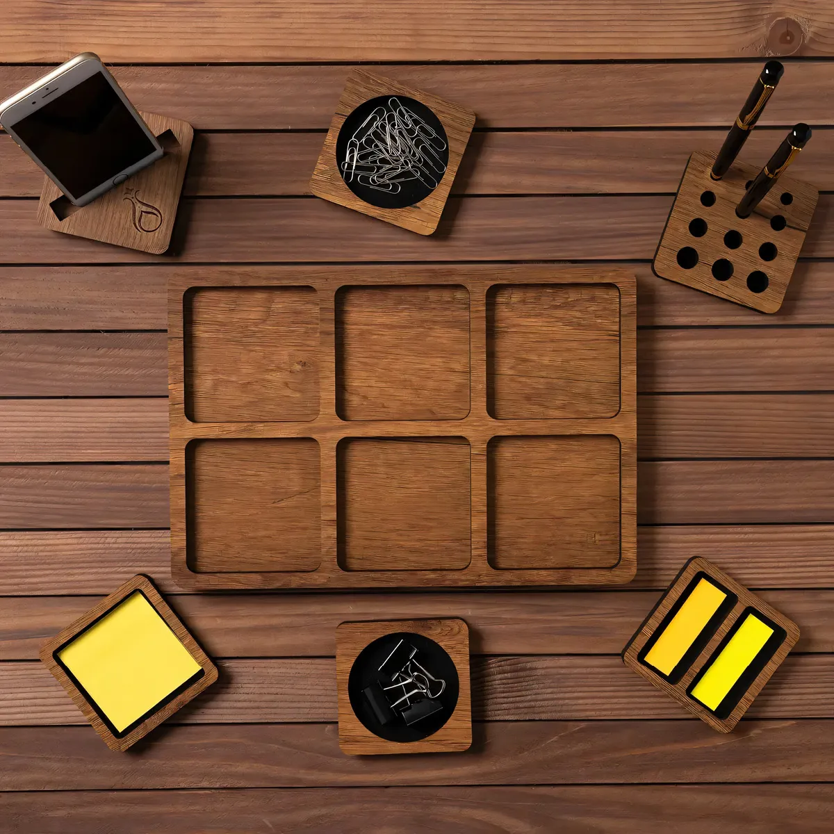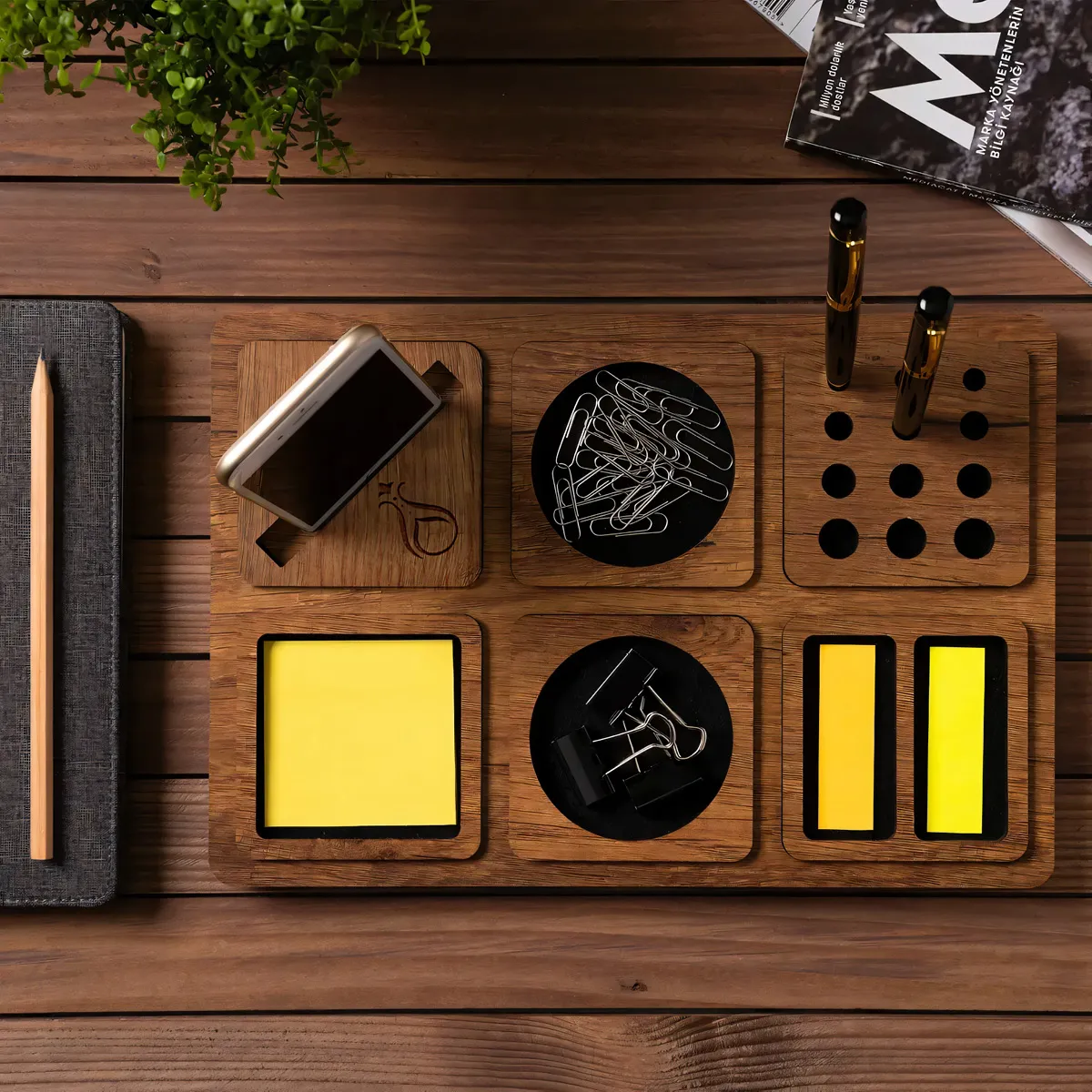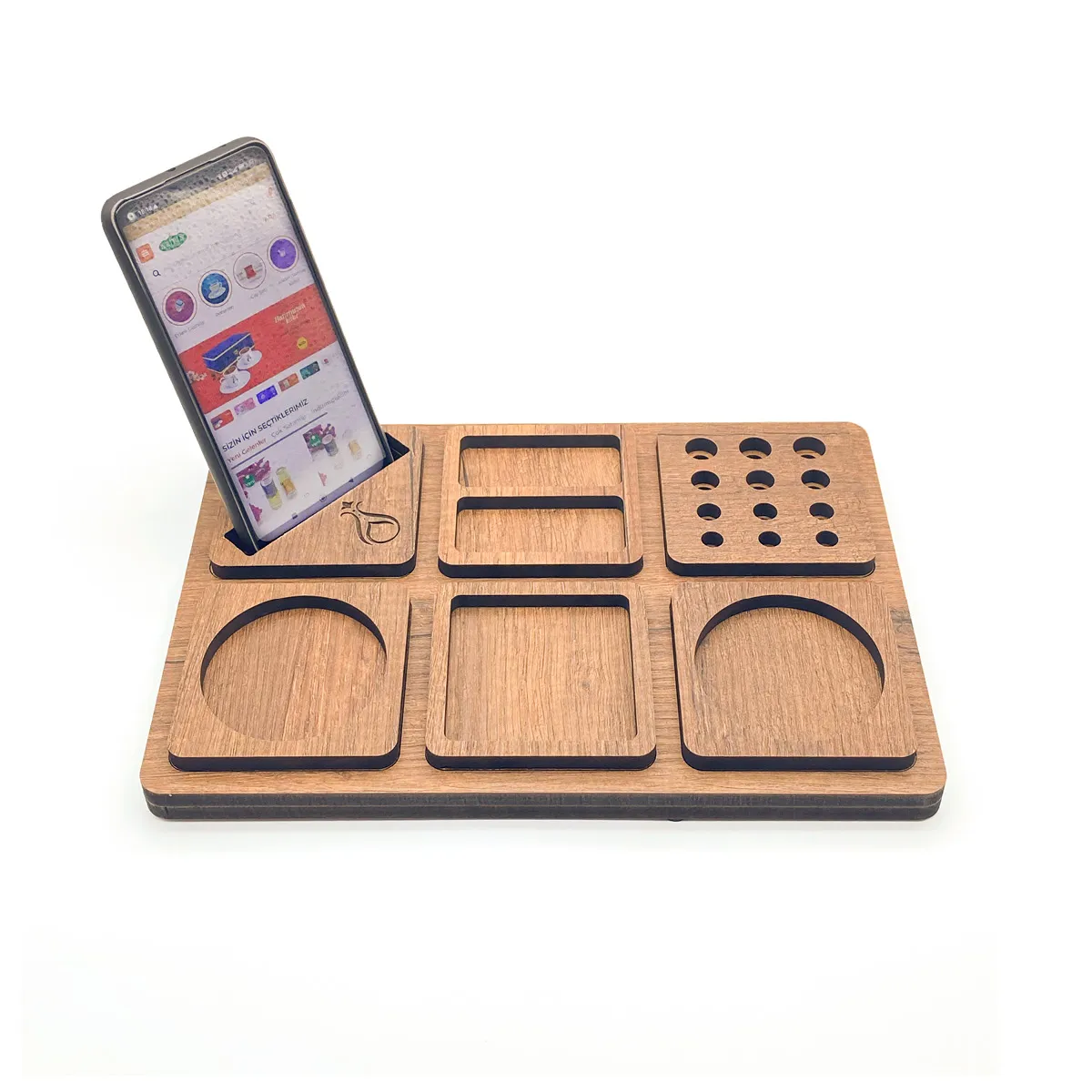 Serhendi Logolu Ahşap Masaüstü Düzenleyici & Telefon Standlı Kalemlik