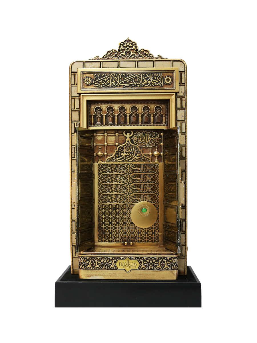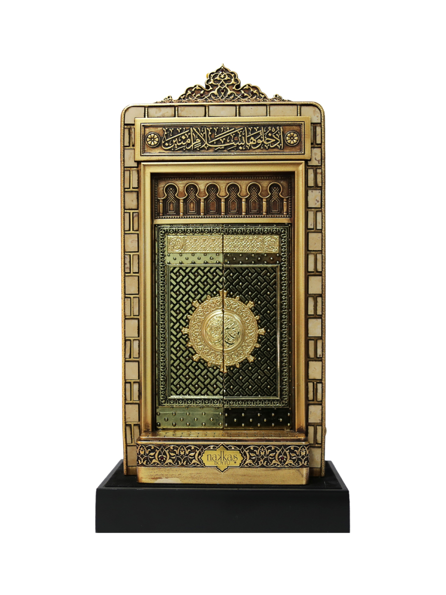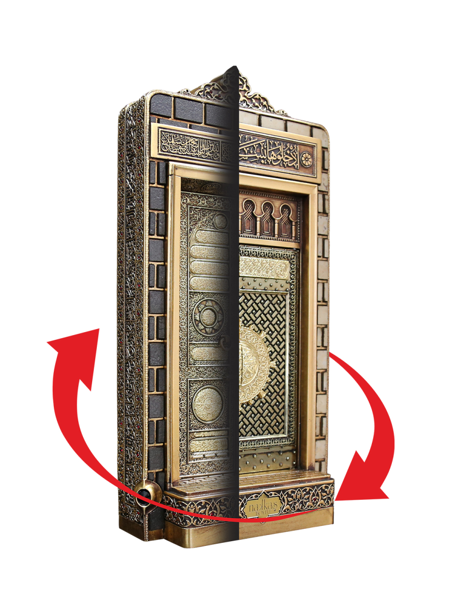 Biz; bir kapının ancak açıldığında kapı olduğu düşüncesiyle, bu iki kapıyı kabartma olarak değil, gerçek bir kapı gibi açılıp kapanabilen zamak döküm kanatlar hâlinde tasarladık. Kapı halkalarını, tokmak bölümlerini ve Kâbe Kapısı kilit mekanizmasını ise orijinal formu referans alarak, ayrı ve tutulabilecek şekilde tasarladık. Böylece hem Beytullah Kapısında hem de Mescidi Nebevi Kapısında daha gerçekçi bir tasarım hassasiyeti yakaladık.