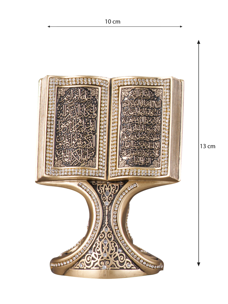 Tasarımımızda Bakara Suresi’nin ilk sayfasında yer alan beş ayeti nakşettik.