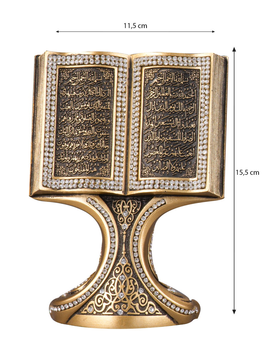 Tasarımımızda Bakara Suresi’nin ilk sayfasında yer alan beş ayeti nakşettik.