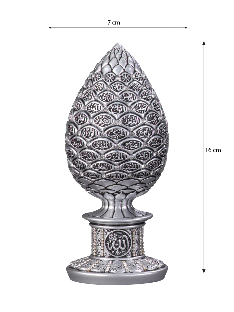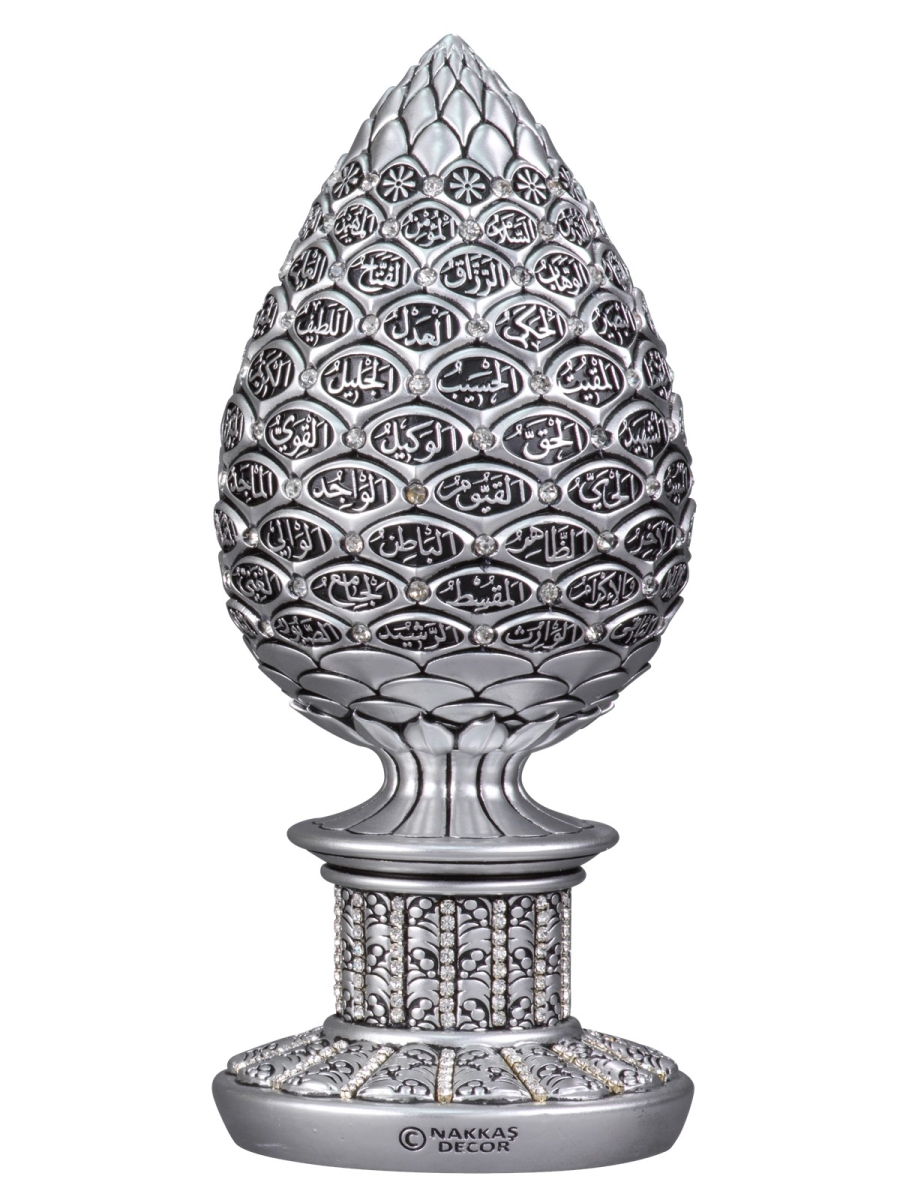Stilize edilmiş kozalak formundan oluşturduğumuz gövdeye Esma’ül Hüsna’ yı nakşettik.