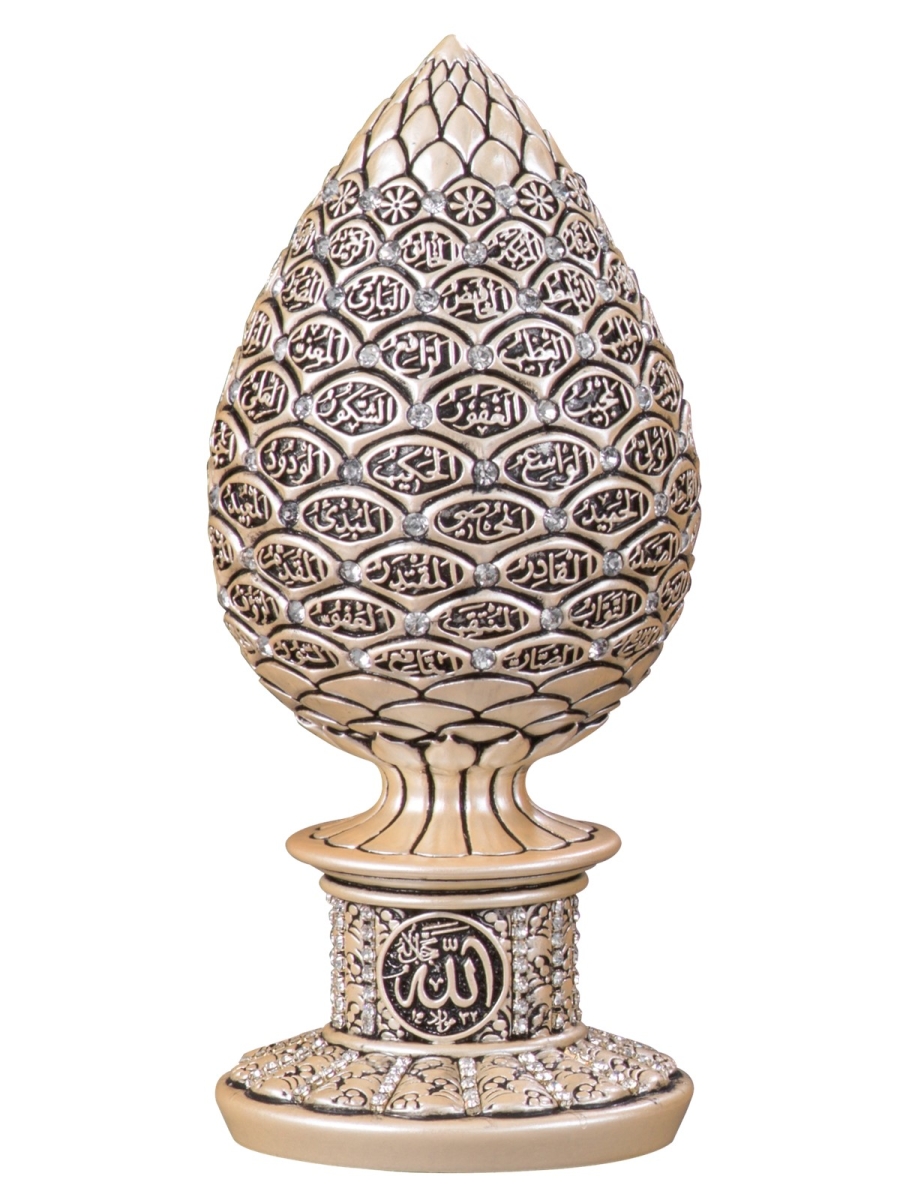Stilize edilmiş kozalak formundan oluşturduğumuz gövdeye Esma’ül Hüsna’ yı nakşettik.