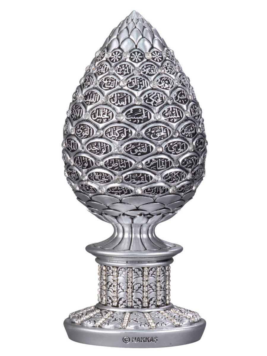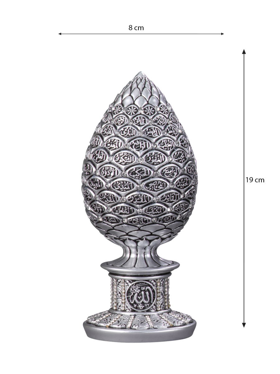 Stilize edilmiş kozalak formundan oluşturduğumuz gövdeye Esma’ül Hüsna’ yı nakşettik.