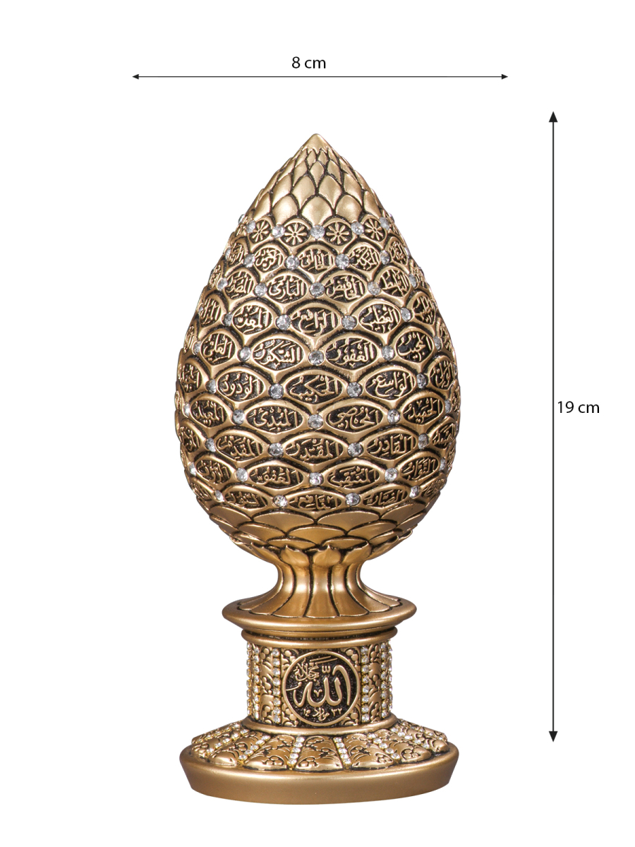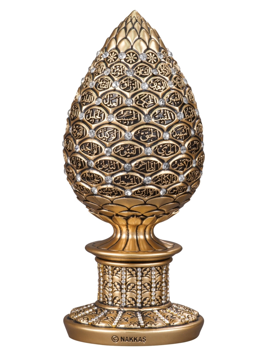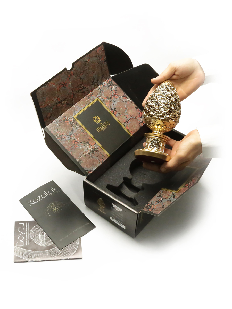 Stilize edilmiş kozalak formundan oluşturduğumuz gövdeye Esma’ül Hüsna’ yı nakşettik.