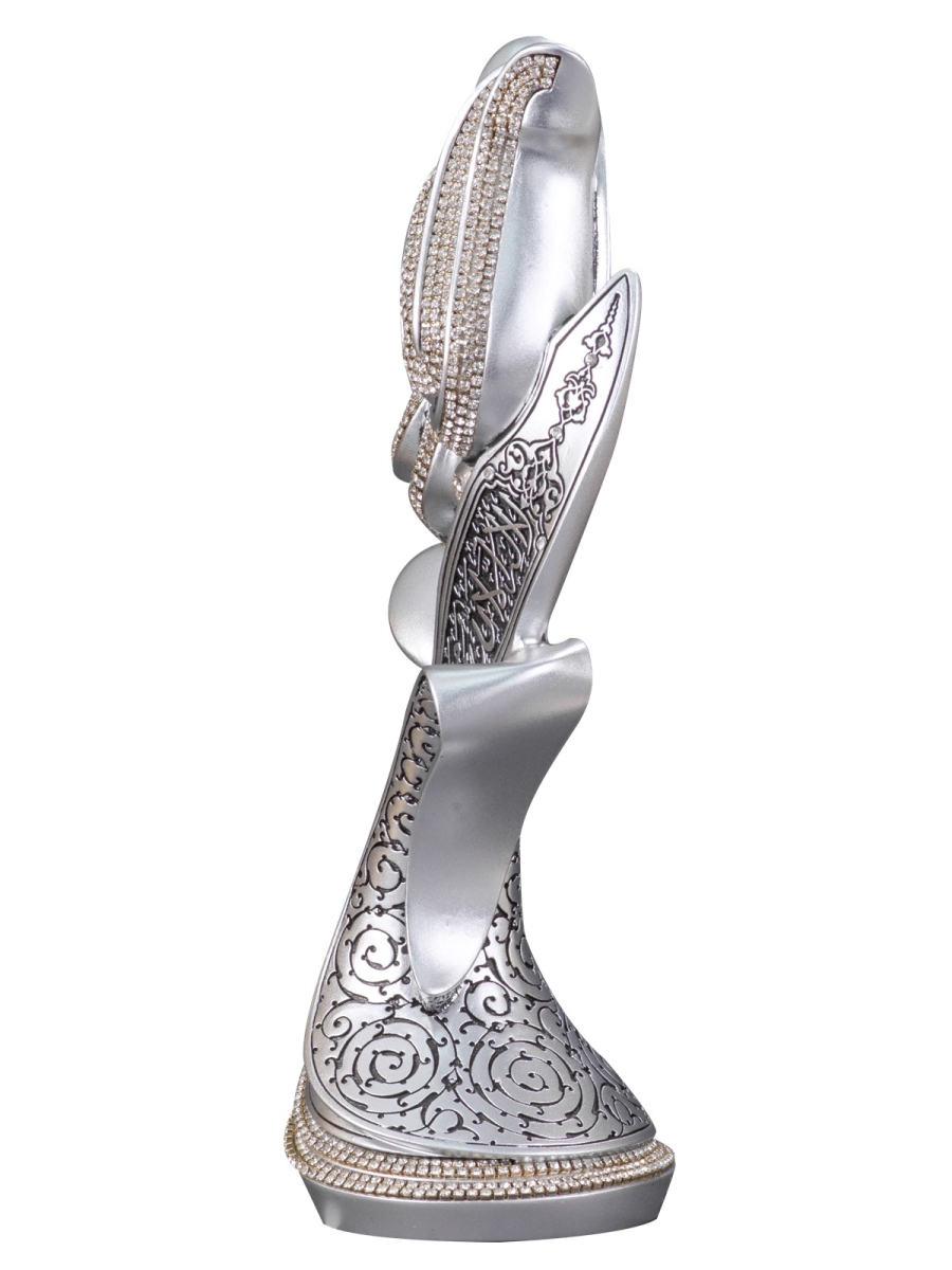 (Peygamberimize salat ve selam olsun.) duasını nakşettik ve rumi desenler ile bezedik. Gülün tezyinatını da zincir kristal taşlarla sağladık.