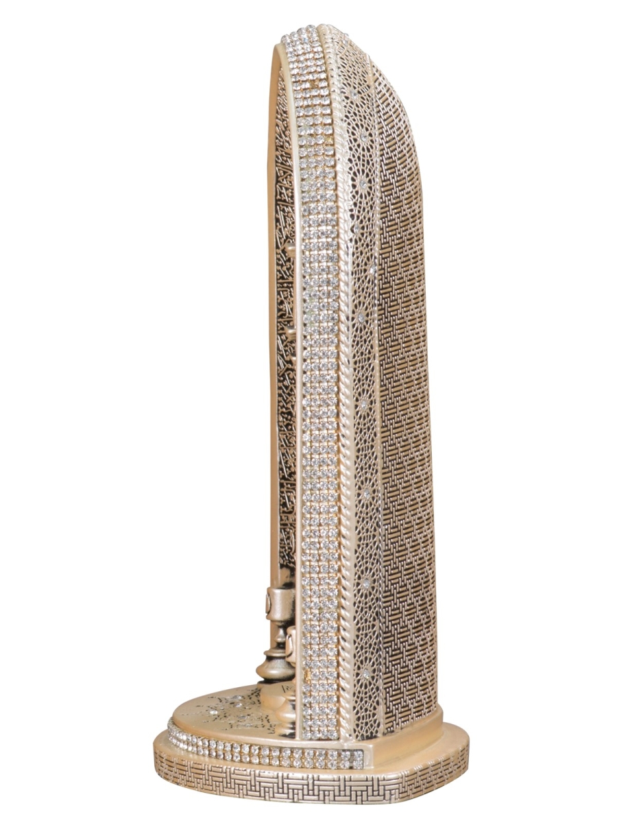 Kenar bordürünün üst kısmı geniş tutarak tezyinatına zincir kristal taşlarla zenginlik kattık.