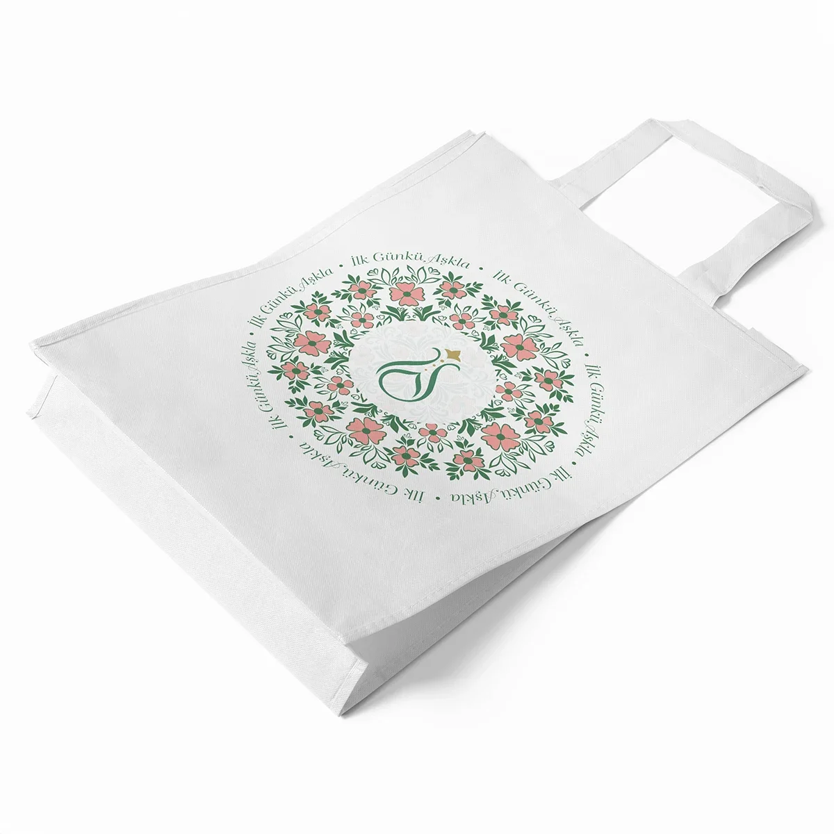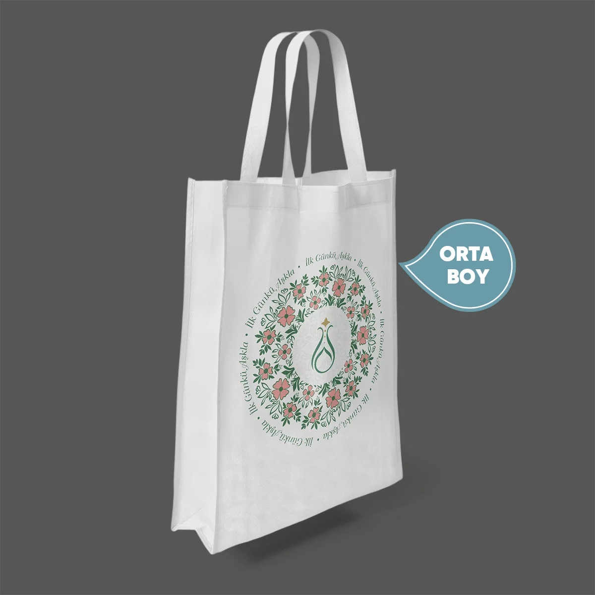 Orta Boy İlk Günkü Aşkla Serhendi Logolu Körüklü Baskılı Tela Bez Çanta 30x40 M2