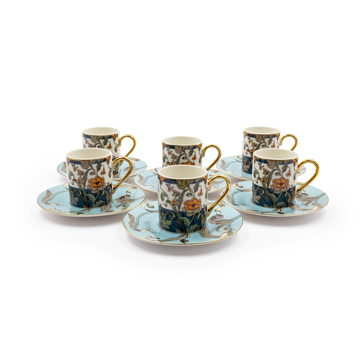 | Reyhan Koleksiyonu: Porselen Fincan Takımı Reyhan Koleksiyonu’nun zarif kahve fincanları, estetik desenlerle süslenmiştir. Fincanlara özenle uygulanmış olan altın yaldız baskı, uzun ömürlü ve göz alıcı bir güzellik sunar. Şıklığı ve zarafeti bir araya getiren bu fincanlar, özel davetler ve ikramlar için güzel bir seçimdir. | |