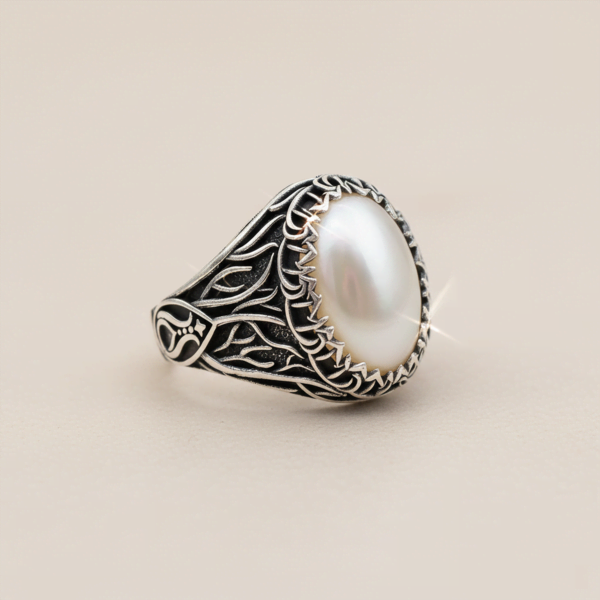 Doğal taş Sedef ile tasarlanan bu erkek yüzük, sade ve net detayları sevenler için özenle hazırlanmış bir modeldir. 925 ayar gümüş ile sedef taşının doğal dokusu birleşerek güçlü bir stil ortaya çıkarır.