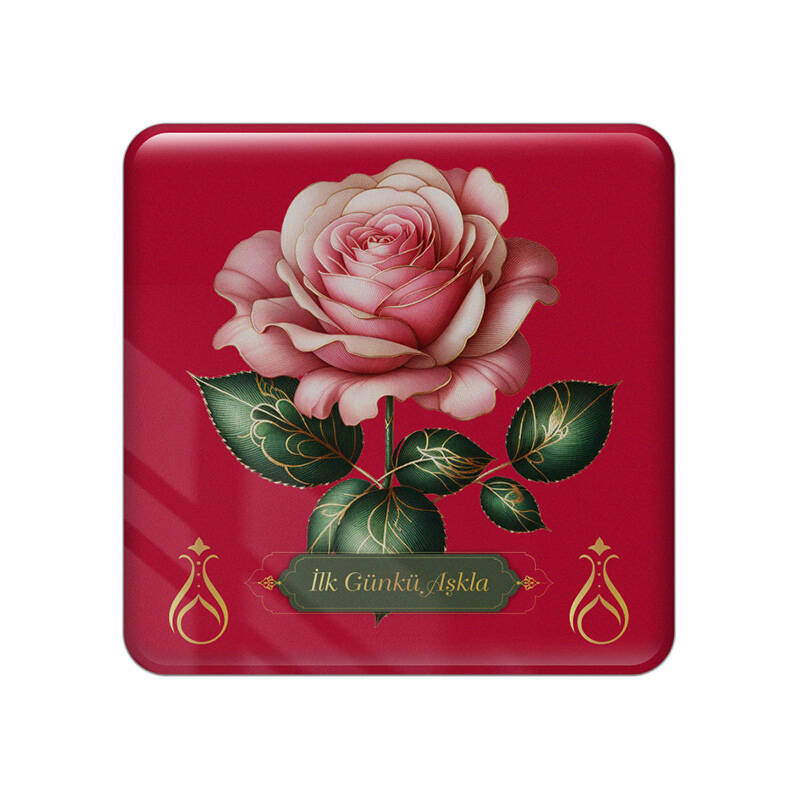 Yapraklı Gül Desenli Pembe Epoksi Magnet Serhendi Logolu İlk Günkü Aşkla M7