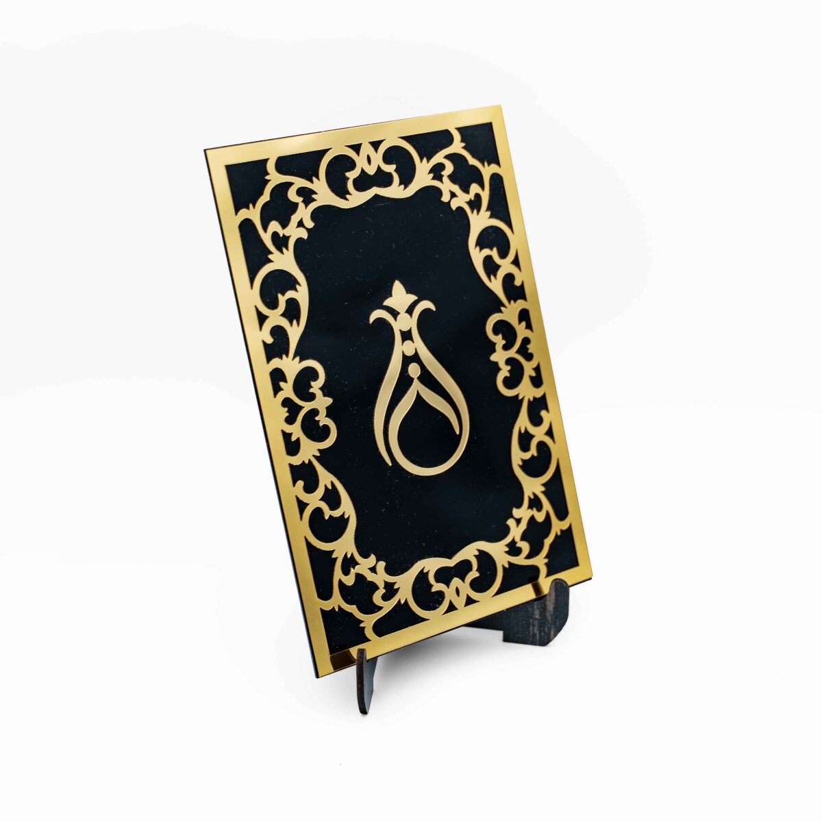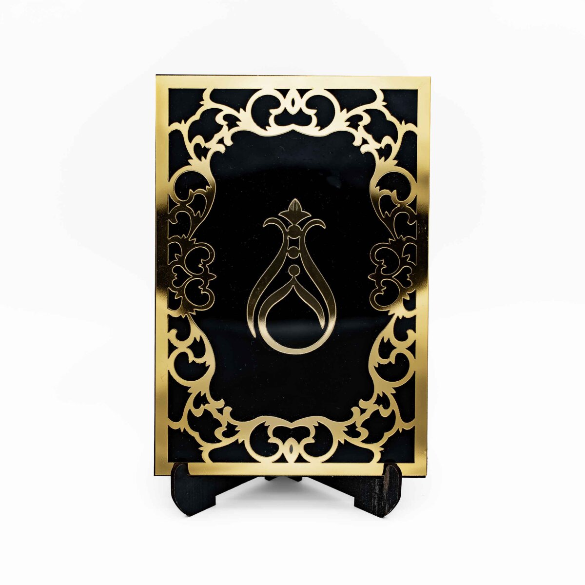 Serhendi Logolu Masa Üstü Tablo – Ayaklı – 19x13 cm – Siyah ve Altın Pleksi