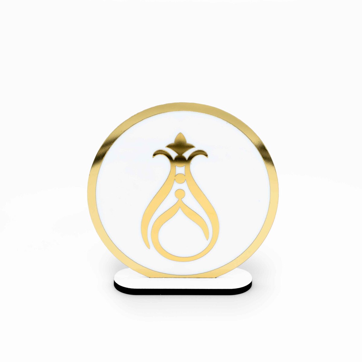 Serhendi Logolu Pleksi Masa Üstü Dekor Standı – Ayaklı – Beyaz – Çap 15 cm