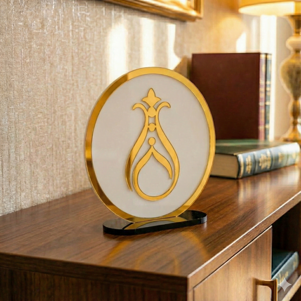Serhendi logolu pleksi masa üstü dekor standı, beyaz rengi ve sade tasarımıyla ofis, salon veya çalışma alanlarında kullanılabilir. Ayaklı yapısı sayesinde masa üzerinde sabit durur ve dekoratif bir öğe olarak işlev görür.