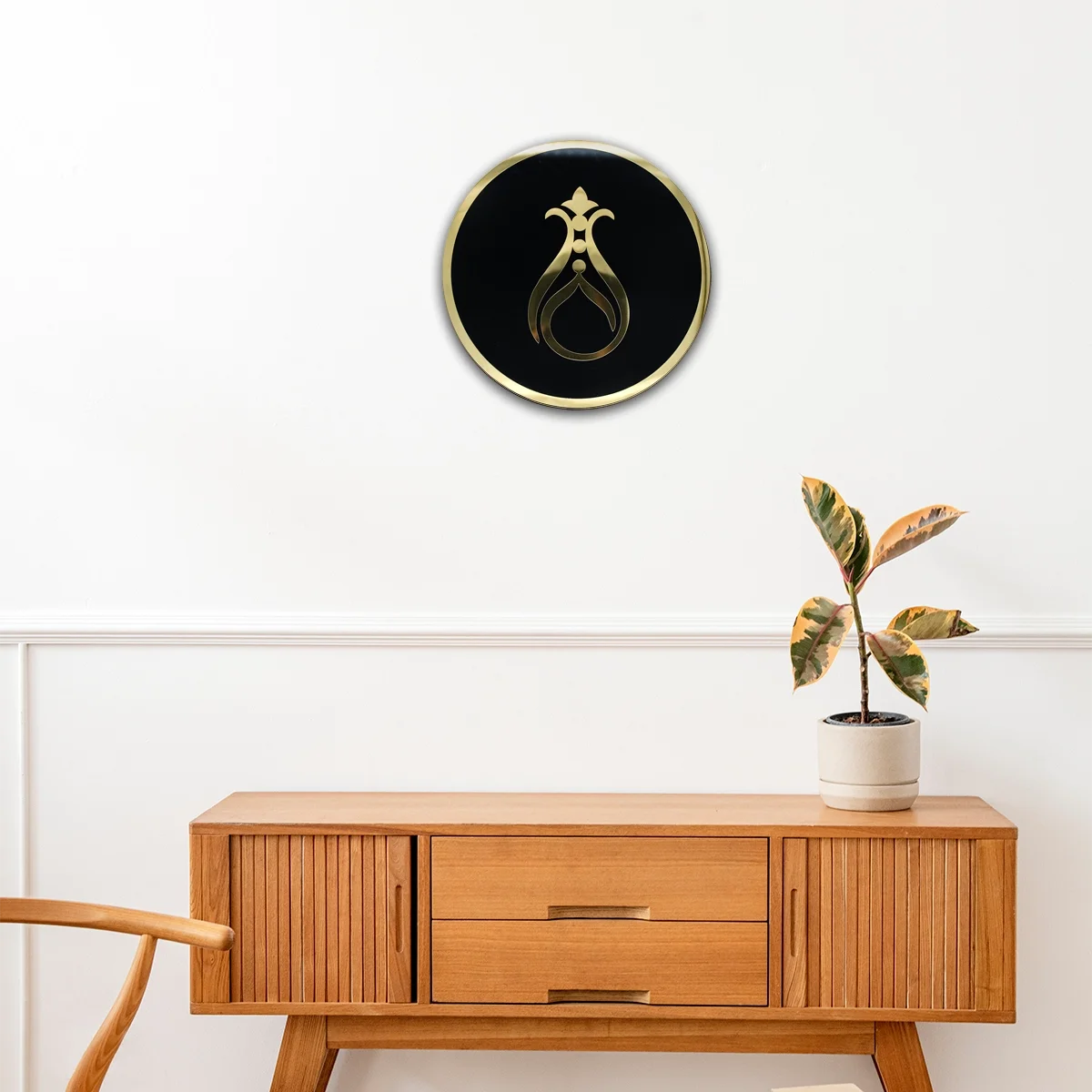 Serhendi logosuyla tasarlanmış, zarif ve karakterli duruşuyla öne çıkan dairesel pleksi tablo. Siyahın derin tonlarıyla mekâna güçlü bir duruş ve denge kazandırır.