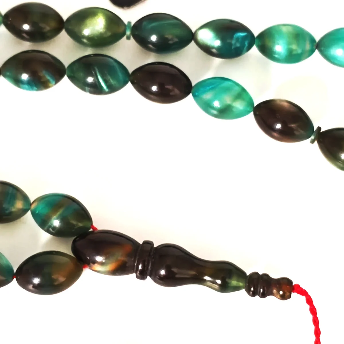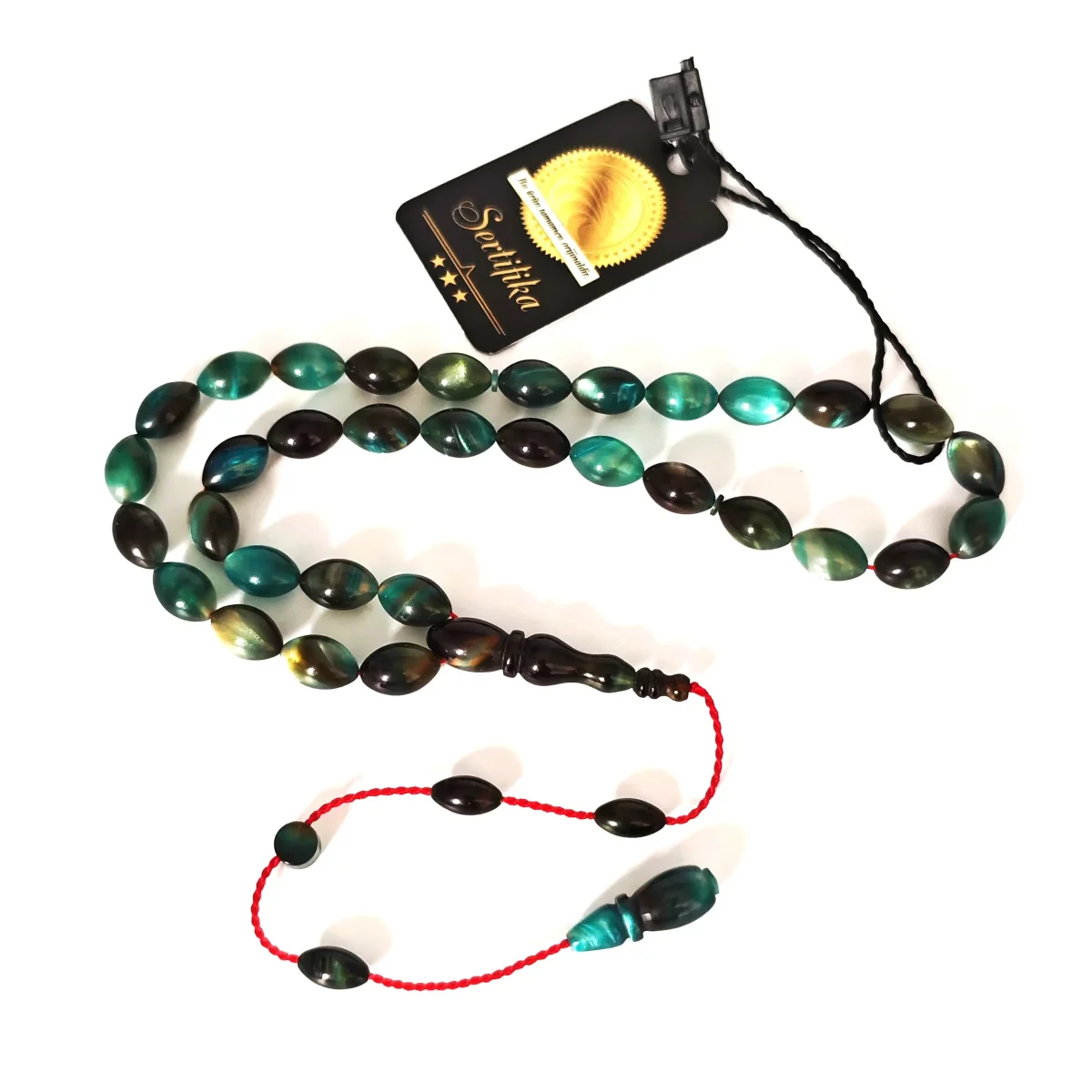 Sıkma Kehribar Hareli Koyu Yeşil Arpa Kesim Tesbih HA19