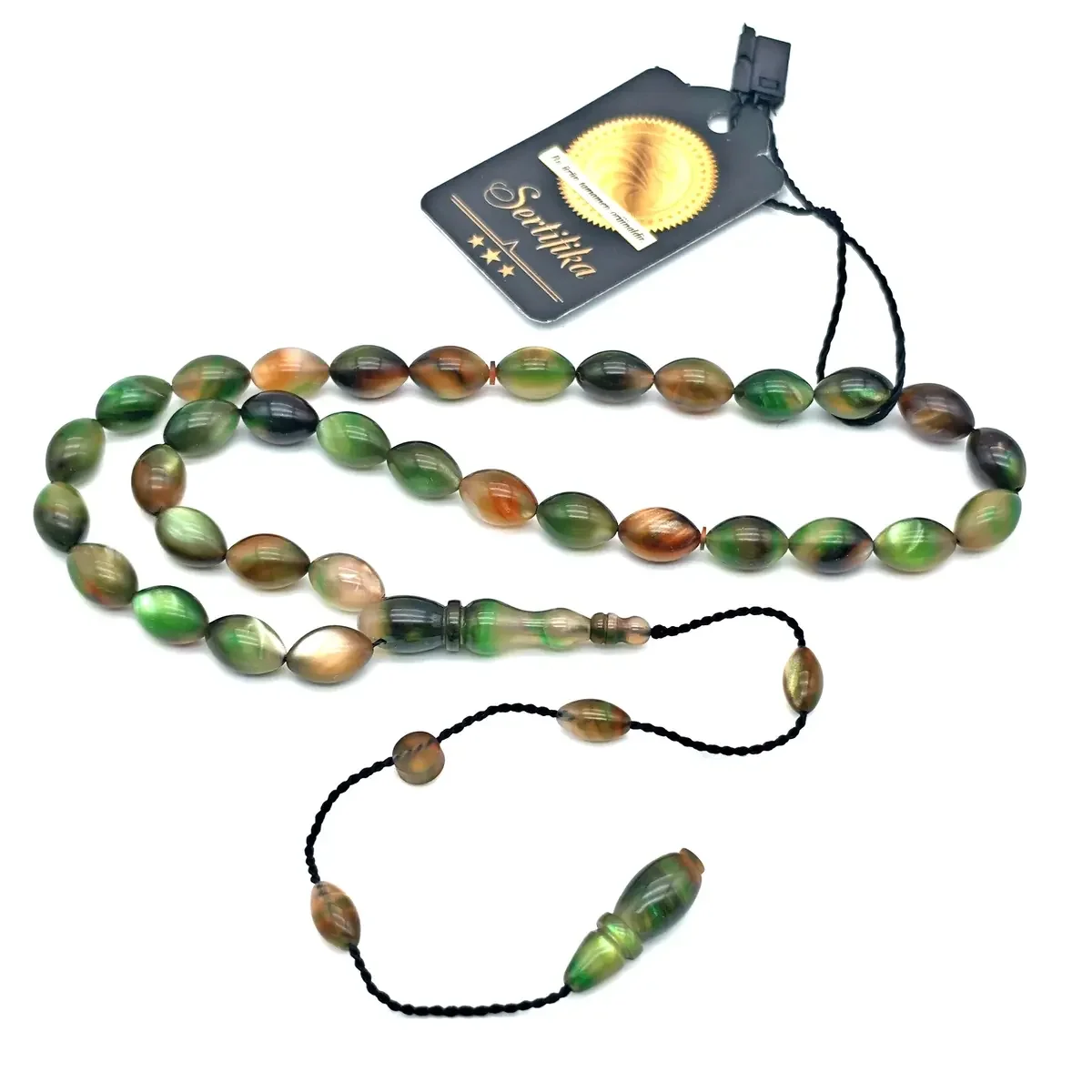 Sıkma Kehribar Hareli Mavi Arpa Kesim Tesbih HA23 - 1Sıkma Kehribar Hareli Mavi Arpa Kesim Tesbih HA23 - 2