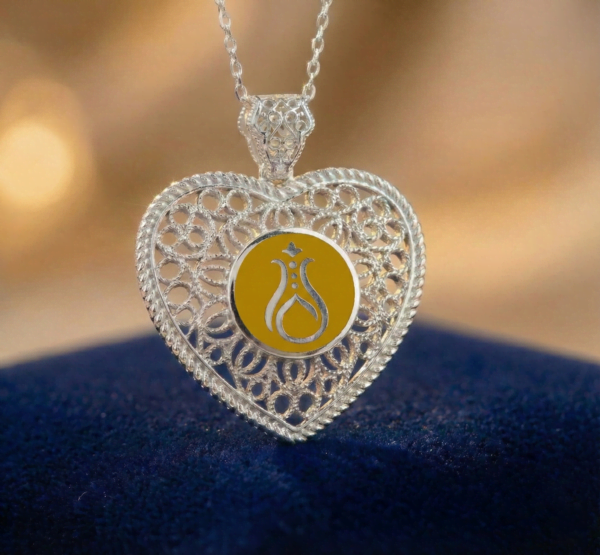 Telkari Kalp Gümüş Kadın Kolye - Serhendi Logolu M1 Sarı