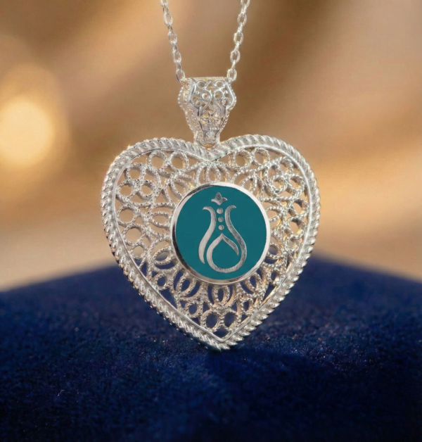 Telkari Kalp Gümüş Kadın Kolye - Serhendi Logolu M1 Turkuaz