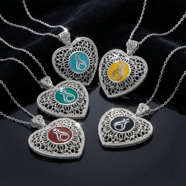 Telkari Koleksiyonu, Serhendi logosuyla süslenmiş 925 ayar kadın gümüş kolyeleriyle zarif bir tasarım sunuyor. İnce telkari işçiliğiyle hazırlanan bu özel kolyeler, farklı tarz ve beğenilere hitap edecek şekilde çeşitli renk ve modellerde üretilmektedir.
