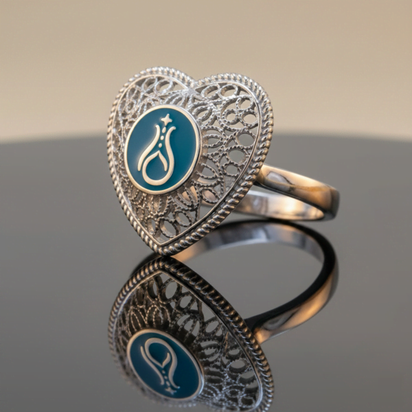 Telkari Kalp Gümüş Kadın Yüzük - Serhendi Logolu M1 Turkuaz