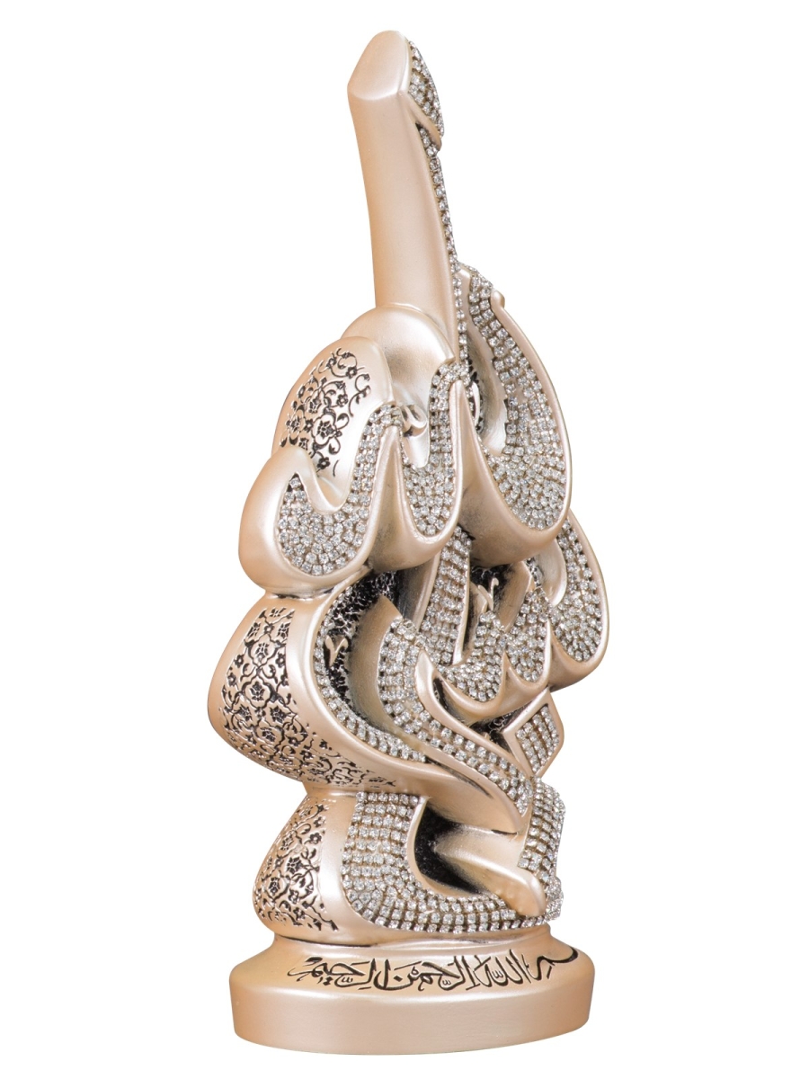 Yuvarlak formda ve geçiş şeklinde tasarladığımız kaidemize Besmele-i Şerif’i nakşettik.