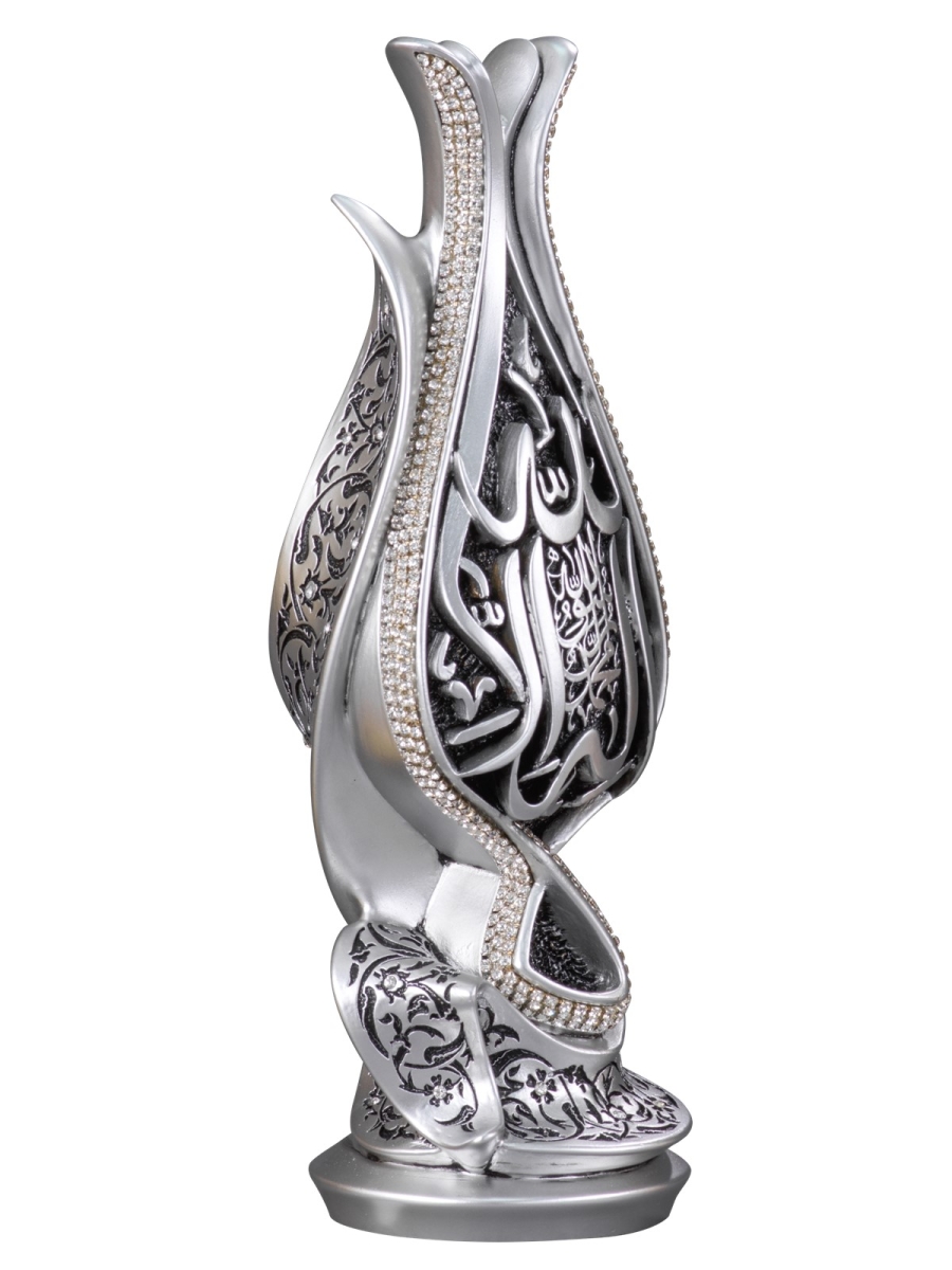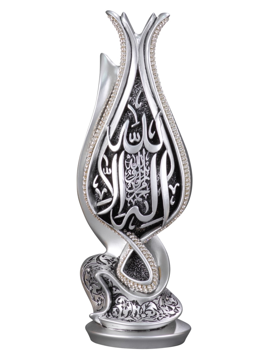 Stilize lale formunu boyut vererek şekillendirdiğimiz tasarımımız üzerine Kelime-i Tevhi’di nakşettik.