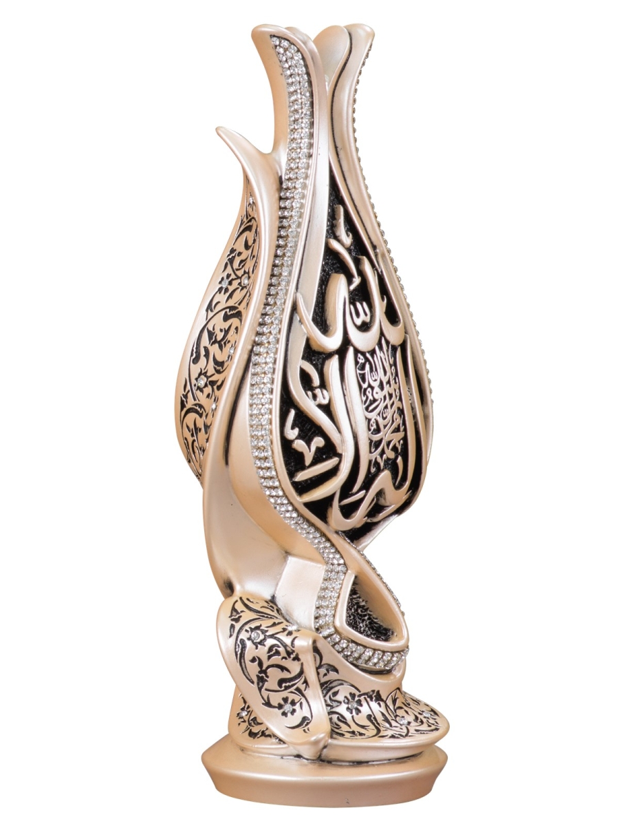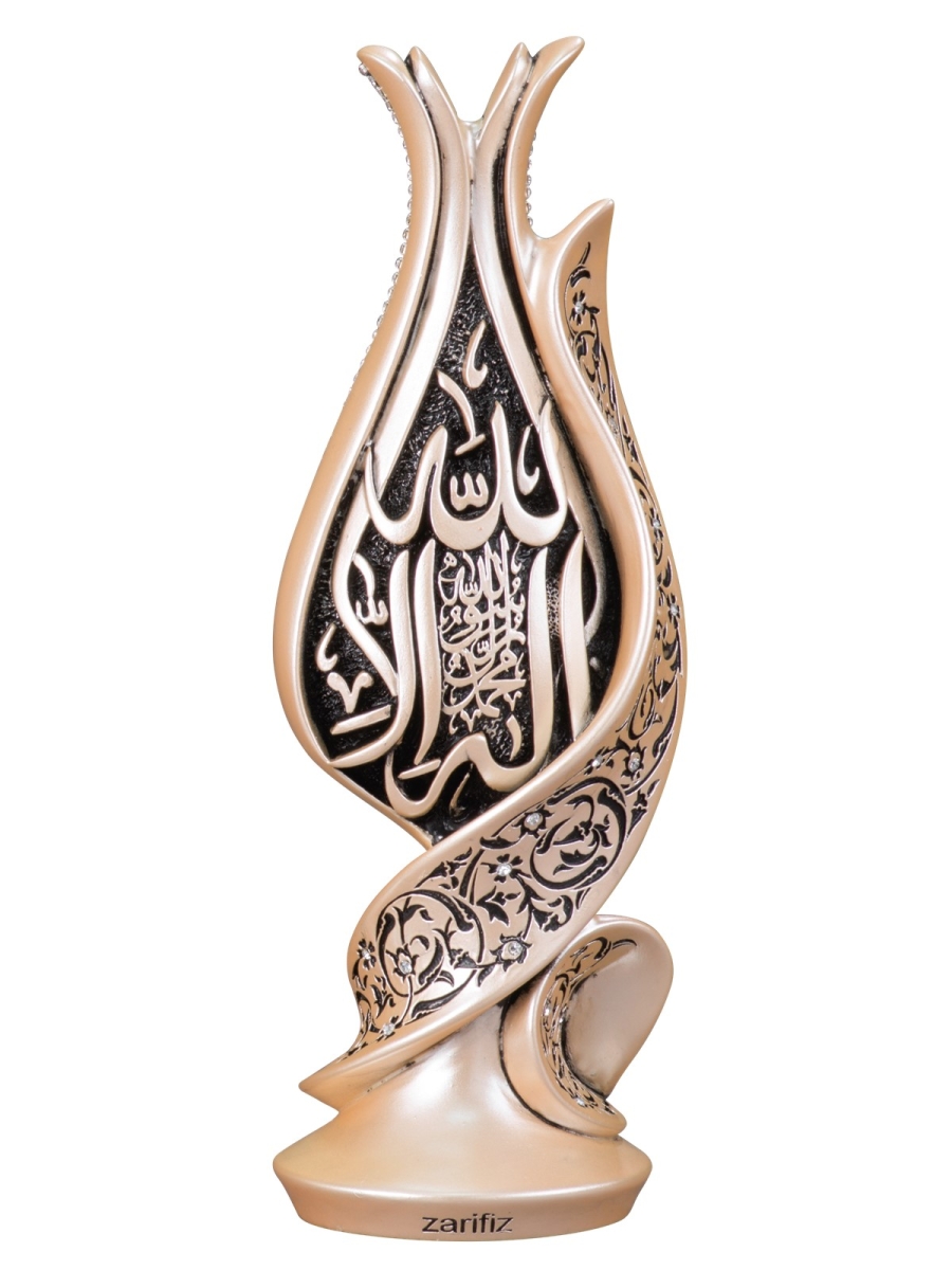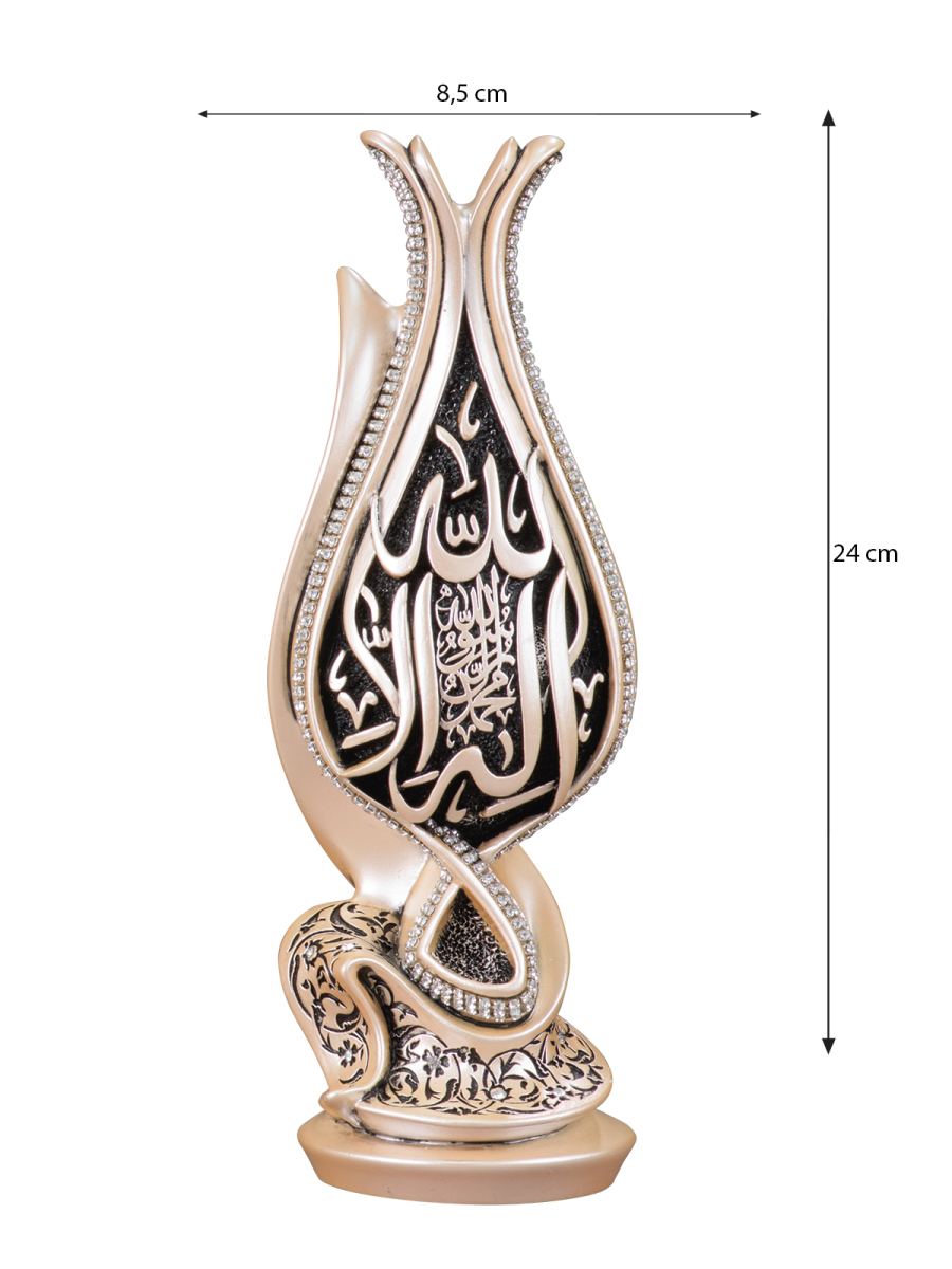 Stilize lale formunu boyut vererek şekillendirdiğimiz tasarımımız üzerine Kelime-i Tevhi’di nakşettik.